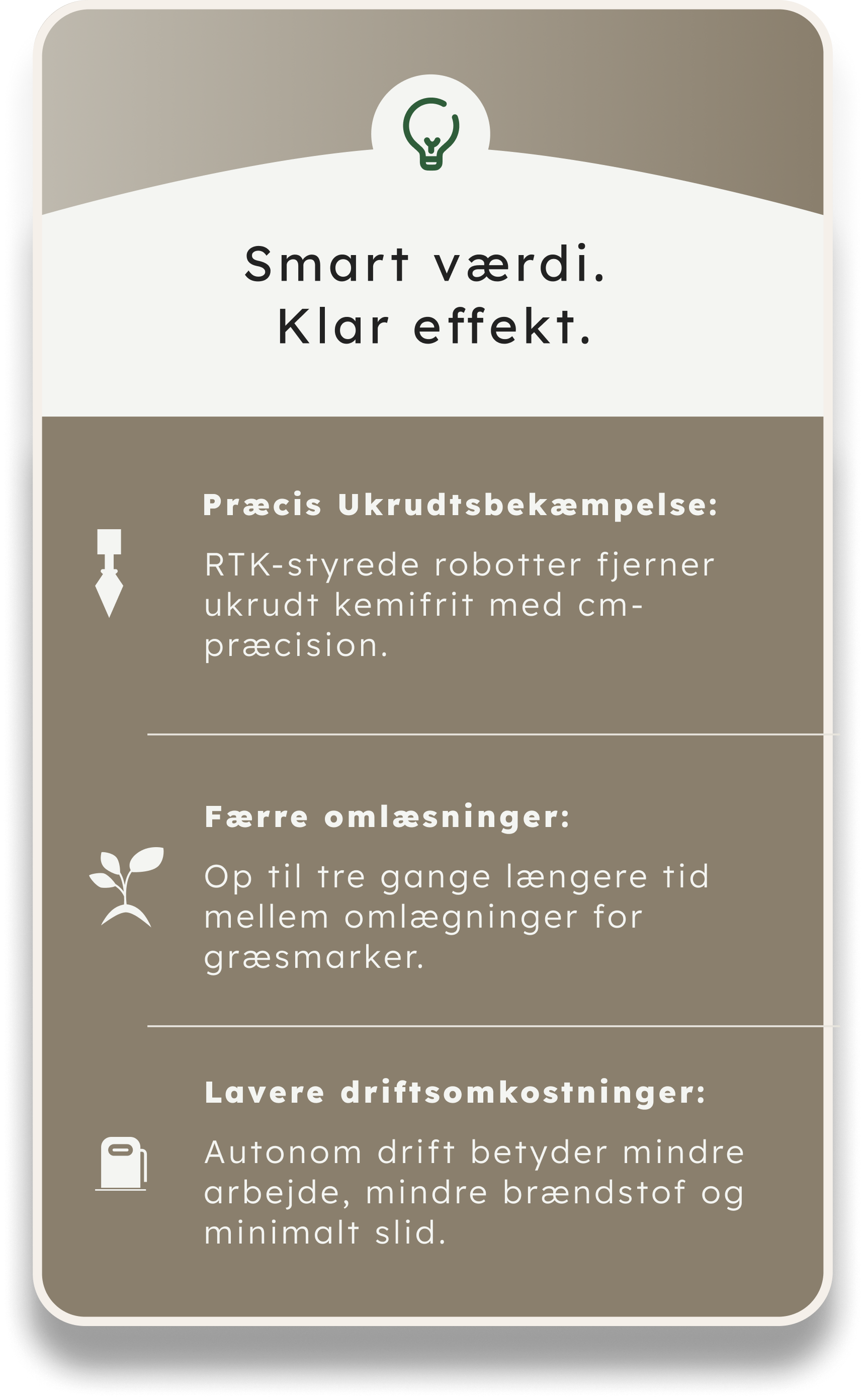 Vi udvikler autonome landbrugsrobotter, der hjælper landmænd med præcis og bæredygtig ukrudtsbekæmpelse - med mindre manuelt arbejde.